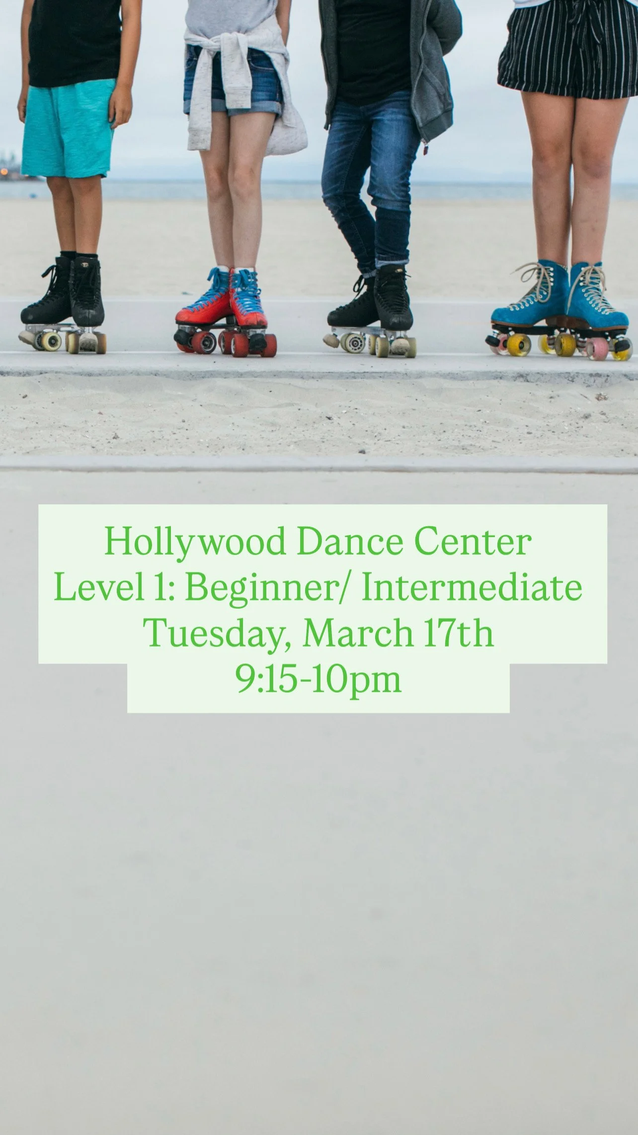 Join us for a beginner/intermediate Learn to Skate class at the Hollywood Dance Center!